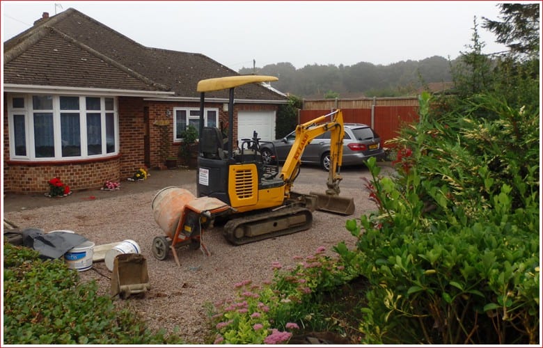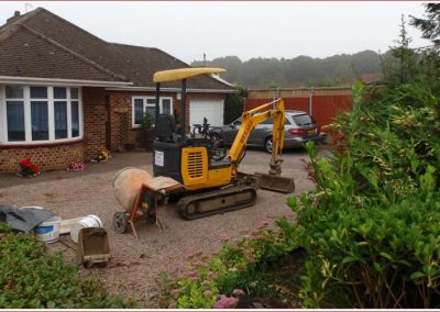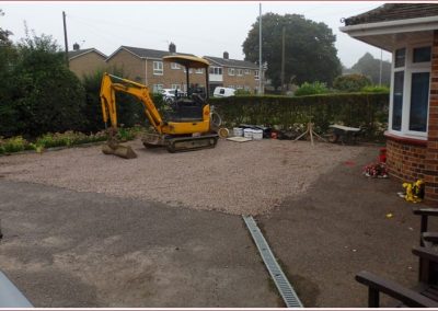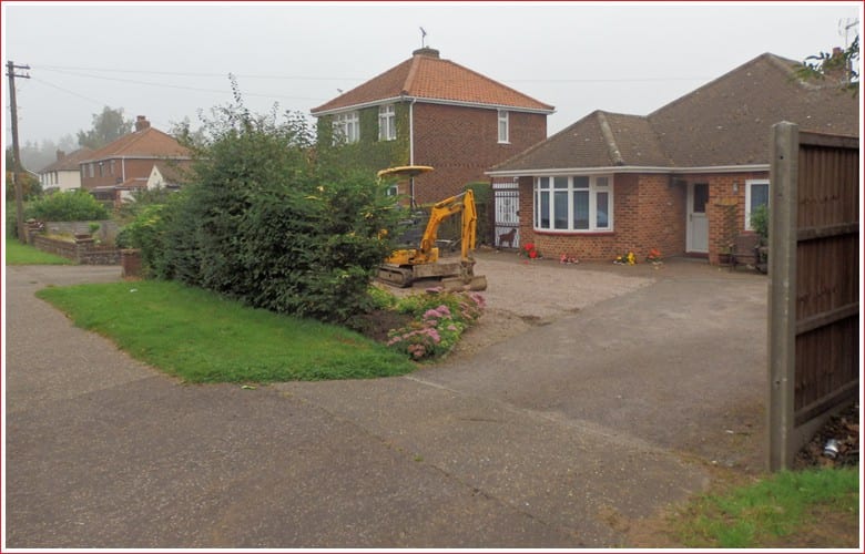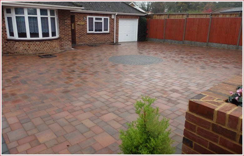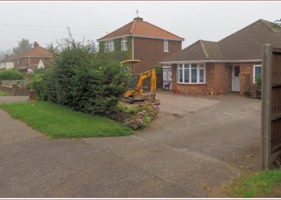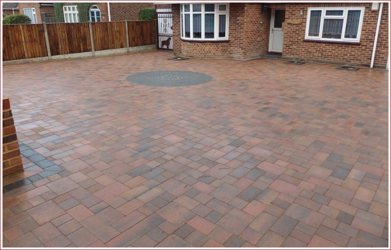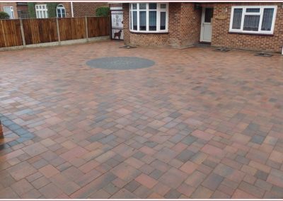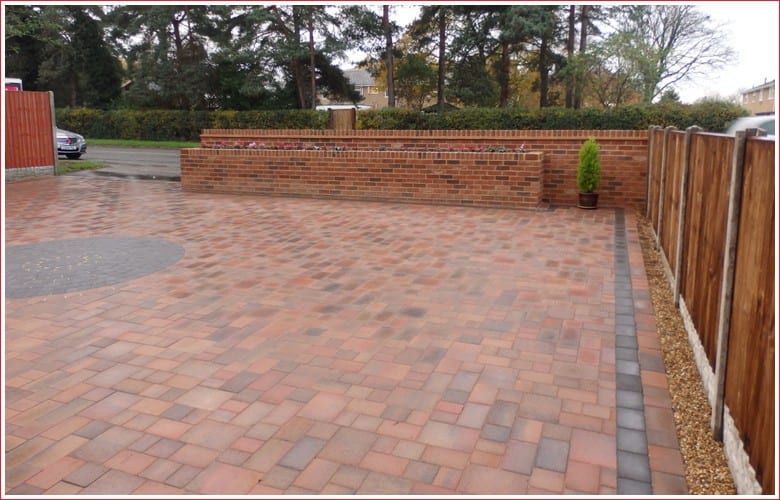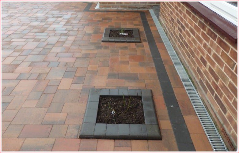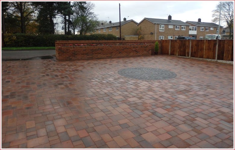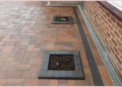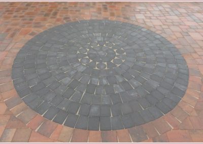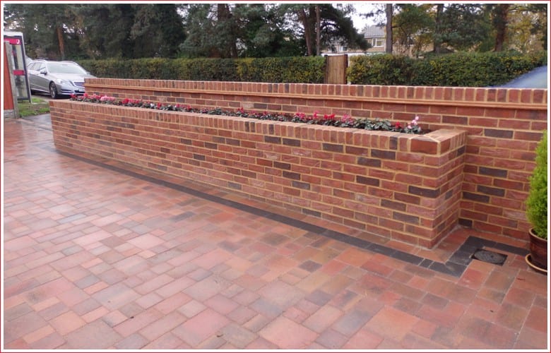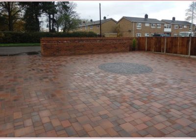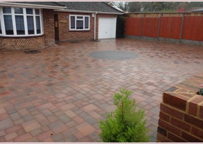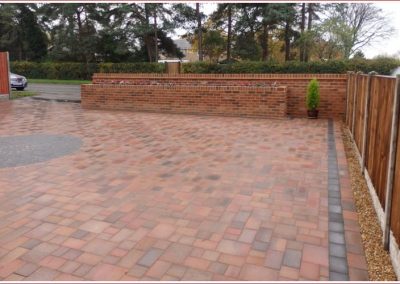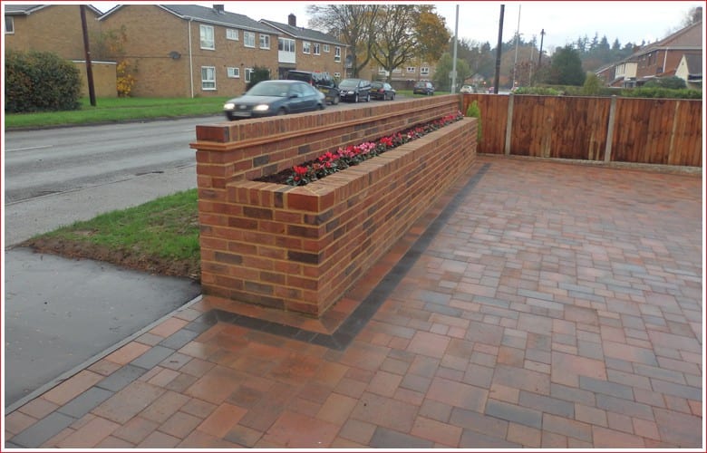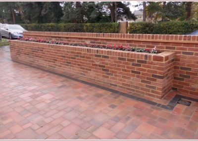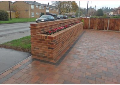 Mr Singh wanted a new driveway so it would be a lot better under foot, and remove the hedge and build a wall at the front of the bungalow with a raised planter so there is no bending down when maintaining the flower bed. They decided to go for a BRETT Beta five size laying pattern colour Autumn Mix with a charcoal border and a beta charcoal Circle to break things up and make a lovely centrepiece. There are also three small raised rose beds using drivestyle kerbs.